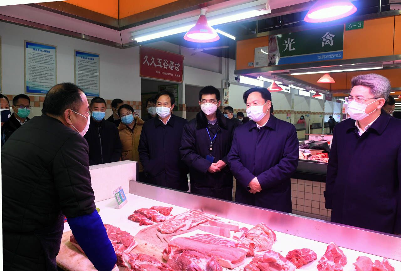 在龙景农贸市场,陈金虎细致检查疫情防控措施是否落实到位,详细了解蔬菜、生鲜等产品的市场价格、进货渠道和每日销售量情况。希望农贸市场坚决克服麻痹松懈思想,认真落实好疫情防控各项措施,为市民提供干净、安全的购物环境。同时,要保障市场货源充足、供货渠道畅通,让市民每天都能买到新鲜菜、放心菜、平价菜。