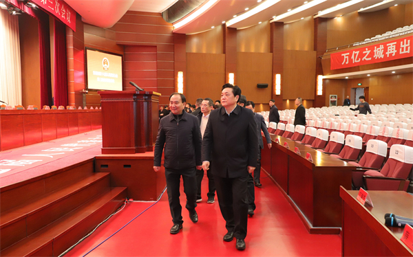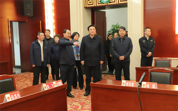 市十七届人大三次会议即将开幕。1月14日上午,市人大常委会副主任、党组副书记韩九云带队,到人代会会场及代表驻地宾馆,检查会议准备工作情况。市人大常委会秘书长高宏华参加检查。