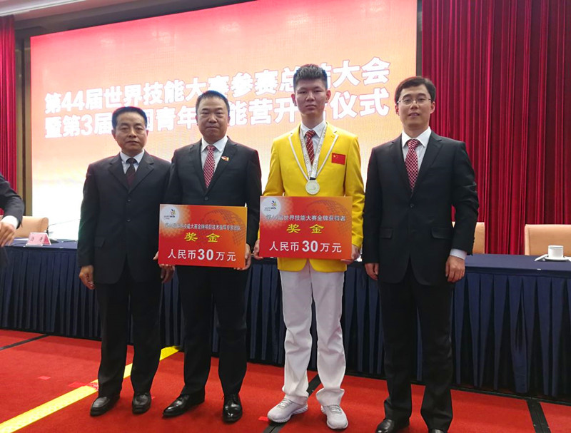 会上,人力资源和社会保障部职业能力司司长张立新汇报第44届世界技能大赛参赛工作情况。人力资源和社会保障部副部长张义珍宣读第44届世界技能大赛获奖选手和为参赛工作作出贡献单位及个人的表扬决定。主席台就座领导分别为第44届世界技能大赛获金、银、铜牌选手、金牌项目技术指导专家团队颁发奖金,为参赛赞助合作单位颁发荣誉牌匾。最后,尹蔚民讲话并为第3届中国青年技能营授旗,宋彪作为旗手接旗。