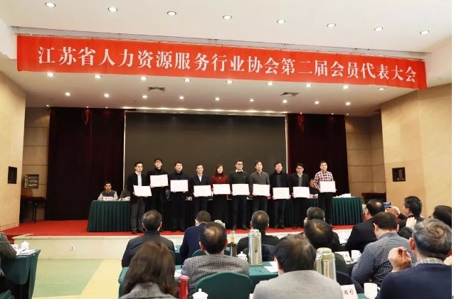 1月17日,江苏省人力资源服务行业协会在南京召开了第二届会员代表大会,会议总结了过去5年来的工作,谋划了新的发展思路,选举产生了新一届领导班子,省人社厅、民政厅等有关领导、协会理事会全体成员以及会员代表共160余人参会。