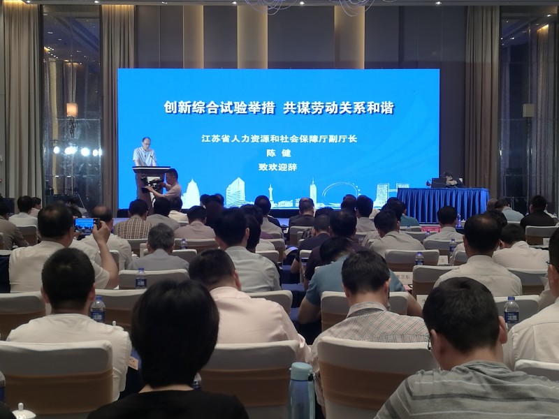 陈健副厅长在致辞中指出,新时代开展和谐劳动关系综合试验区建设,要坚持走改革试验的创新之路,坚持走符合省情的特色之路,坚持走以人民为中心的发展之路,锲而不舍地推进省级和谐劳动关系创建示范项目和综合试验区试点项目建设,不断拓宽江苏劳动关系工作发展的新视野、拓展新路径,持续扩大和谐劳动关系建设的覆盖面,切实提高综合试验区的建设质量,积极打造一批工作基础扎实、亮点成效突出的和谐劳动关系样板区,为推进江苏劳动关系工作在新时代高质量发展走在全国前列做出新的更大贡献。