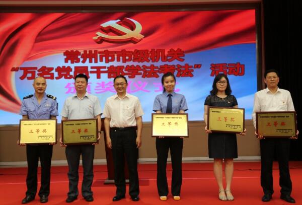 6月26日,由市级机关工委、市司法局、新华网江苏频道联合主办的市级机关“万名党员干部学法考法”活动决赛在市政务服务中心举行。我局副局长李庆、局机关党委王红俊、市劳动监察支队王红华3名同志组成人社局代表队参赛并积极答题,获得本次活动三等奖。