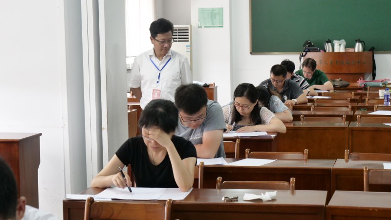 局党组书记、局长陈志良带队巡考,一个一个考场看,不时在考生身边驻足,查看答题情况。试卷收回,专家组即着手阅卷,现场不时为精彩的文字和独到的见解频频点赞。