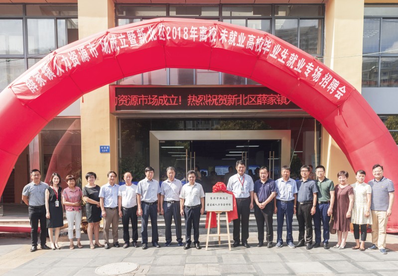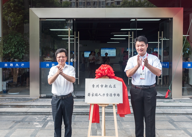 8月16日上午,新北区薛家镇人力资源市场、高新区人力资源市场薛家分市场正式挂牌成立。常州市人力资源和社会保障局局长陈志良、就业促进处处长蒋云中,新北区人力资源和社会保障局局长潘永沺、副局长蒋剑清、人力资源开发中心主任刘伟,薛家镇党委书记顾东青、镇长徐俊、人力资源和社会保障服务所所长钱小红,薛家镇商会代表、民营经济协会代表、民营企业家代表、青商会代表、人大及政协委员代表、瞪羚企业代表、规模企业HR代表、薛家镇各村(社区)书记等近百人参加挂牌仪式。