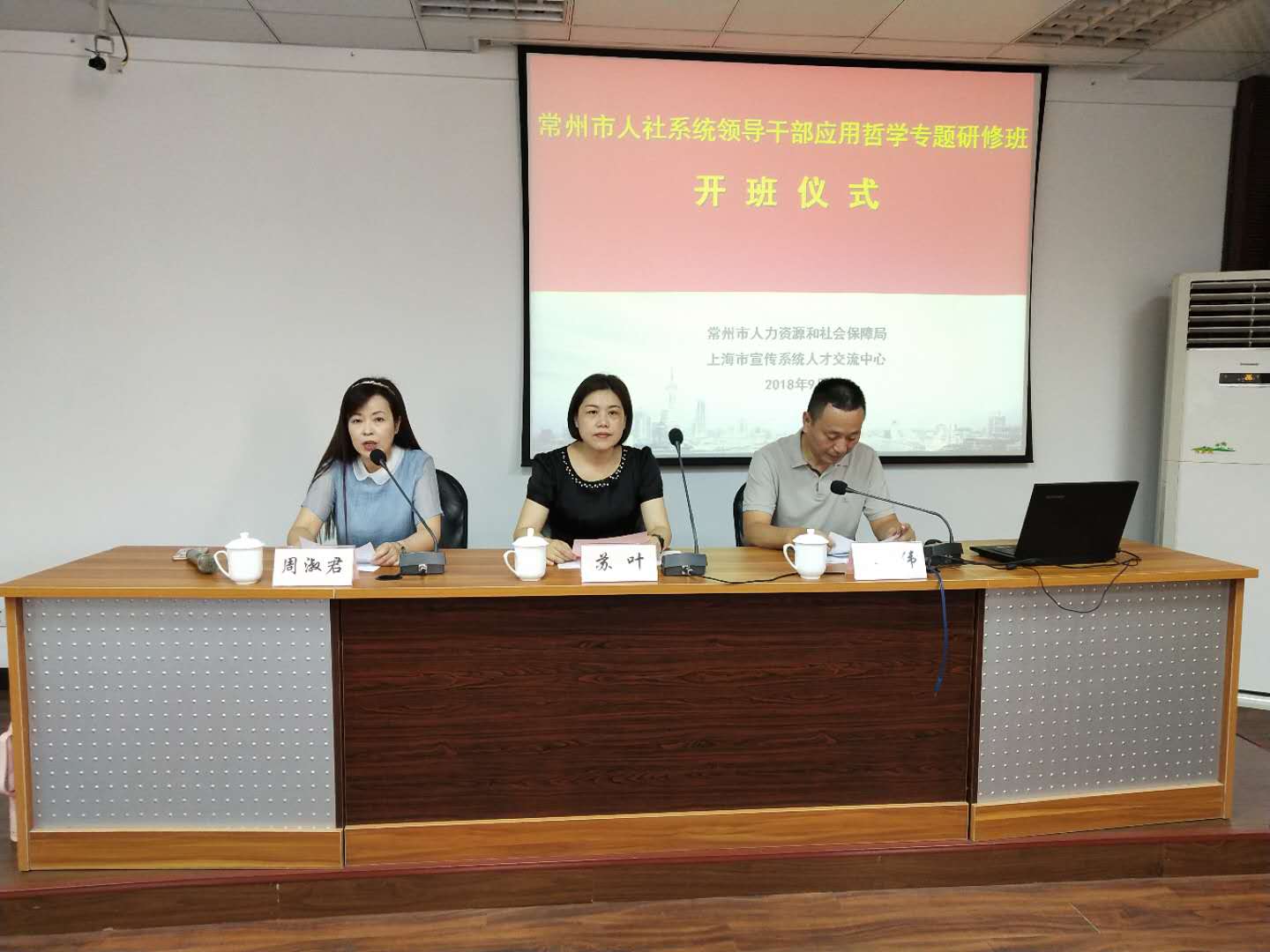 9月4日上午,市人社系统领导干部应用哲学专题研修班在复旦大学新闻学院综合楼正式开班。上海市宣传系统人才交流中心主任黎洪伟致欢迎辞,市人社局副局长苏叶同志作开班动员,开班仪式由市人社局组织人事处处长周淑君主持。