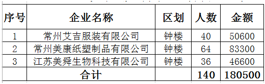 常州市第二批认定企业经自主申报,由区就业管理部门初审,市就业管理中心复审,拟同意核拨一次性吸纳就业补贴并进行公示。公示期2020年6月15日-6月19日。如有异议,请于公示期内以电话或书面形式向市就管中心反映。联系方式:常州市劳动就业管理中心,联系电话:0519-85588919。