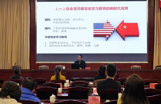 动员会后,党史学习教育市委宣讲团成员、市委党校党史党建教研室主任曹祖平为全体参会人员作《在学习党史中稳步走向美好未来》专题辅导报告。