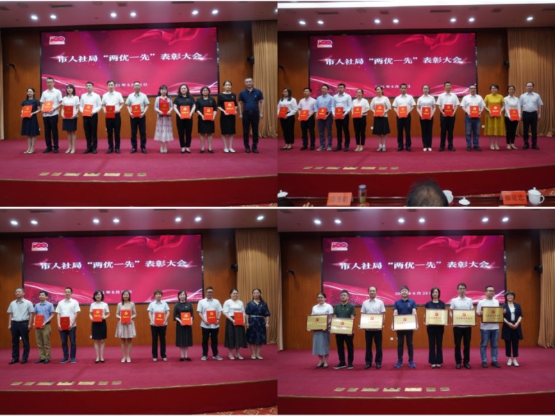 为庆祝中国共产党成立100周年,回顾党的光辉历程,弘扬党的优良传统,表彰优秀先进典型,进一步引导广大人社党员干部坚定信念,凝聚力量,争先创优,推动人社事业取得新业绩,再上新台阶,开创新局面,6月23日下午,市人社局在行政中心群贤堂举办“传承红色精神 续写时代华章”党史宣讲微党课竞赛暨“两优一先”表彰大会。竞赛活动特邀市纪委监委、市委组织部、市委市级机关工委等单位领导莅临指导并担任评委和嘉宾。