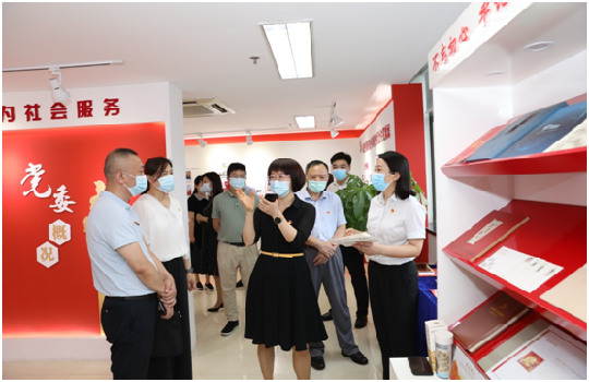 在常州邮政公司党委书记、总经理陈舒冰的带领讲解下,嘉局长一行首先参观了常州邮政“党建基地”。通过墙上展示的邮票走进党史、新中国史、改革开放史和社会主义发展史,了解邮票上的常州风采。在参观过程中,大家共同交流“邮票上的党史”,体悟中国共产党百年光辉历程,进一步汲取精神力量,坚定理想信念,厚植家国情怀。