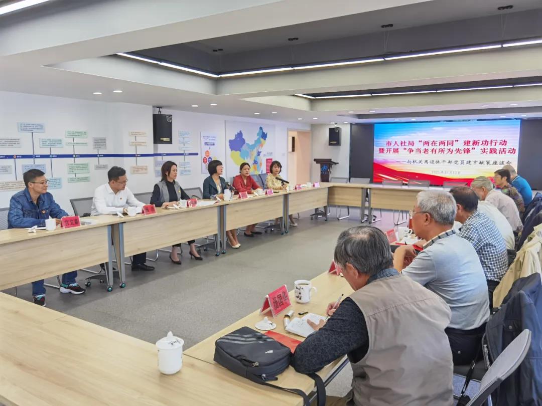 为深入贯彻在离退休党员中落实“两在两同”建新功行动开展“争当老有所为先锋”实践活动部署要求,组织引导局系统老同志践行党的根本宗旨,继续弘扬党的光荣传统和优良作风,充分发挥老同志的政治优势、经验优势、威望优势,全面带动老同志在落实人社事业发展战略大局中争当老有所为先锋,10月12日上午,在重阳节即将来临之际,市人社局组织召开离退休党员“争当老有所为先锋”建言献策座谈会,关怀慰问老干部,听取老同志对人社工作发展的意见建议,进一步凝聚智慧、共叙情谊、畅谈发展。会议邀请局机关8名离退休党员干部代表参加座谈,局党组书记、局长嘉秀娟,副局长、机关党委书记、人就中心主任苏叶,局组织人事处、机关党委、市社保中心相关同志参加会议。会议由嘉秀娟局长主持。