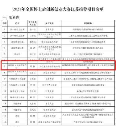 近日,省人社厅专技处公布了江苏省参加全国首届博士后创新创业大赛创新类和创业类名单。此次大赛全省申报创新类的共有386个项目,最终推荐至全国赛的16个,常州市入围1个;全省申报创业类的共96个,最终推荐至全国赛的59个,常州市入围4个,入围总数位列全省第三,仅次于南京和苏州。