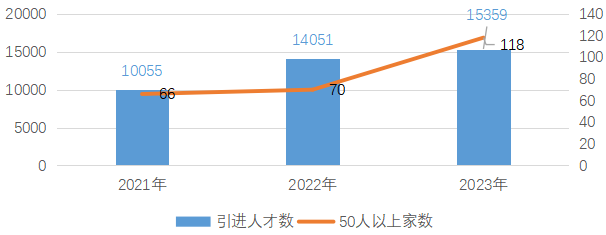 从引进人才总量来看,今年上半年我市共引进各类人才52240人(其中专科及以上学历人才37622人,技能人才14618人),比2022年的42003人、2021年的47202人,分别增长24.37%、10.67%,引才人数创同期历史新高。从引进人才层次来看,今年上半年引进本科及以上人才共17273人,比2022年同期增长43.14%,比2021年同期增长38.59%;其中高层次人才方面,2021-2023年上半年引进的硕博研究生数分别为1035人、1246人和1680人,呈连续增长态势,引才质量提升明显。这与我市抢抓发展机遇,加快推进高校院所、研发总部(中心)等重大创新平台建设,夯实高端人才承载能力,着力引进各类高质量人才有着密切的联系。