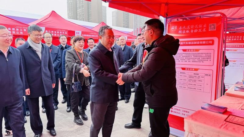 招聘现场,四川省委常委普布顿珠被常州昌瑞汽车部品制造有限公司吸引,他向现场工作人员详细了解的企业生产经营项目、岗位工资、福利待遇等情况,并夸赞道:“江苏的工资收入很高。常州今年跨入万亿之城,是一个好地方!”