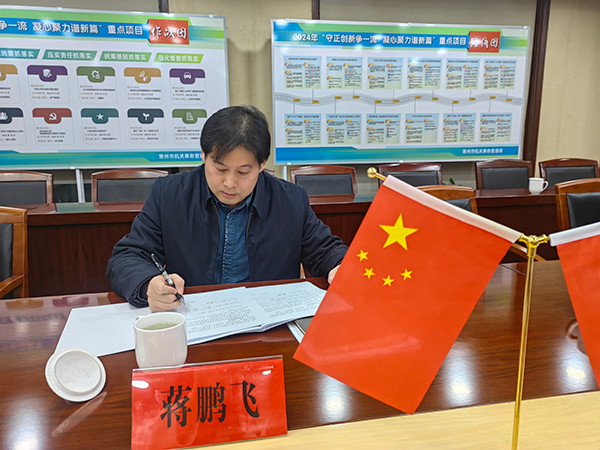 为深入学习贯彻党的二十大、二十届二中全会精神和中央纪委三次全会、省纪委四次全会、市纪委三次全会精神,履行全面从严治党主体责任,推进党风廉政建设责任制工作全面落实,3月4日,常州市机关事务管理局党组书记,局长蒋鹏飞与各分管领导及机关处室负责人、局属单位负责人分别签订2024年《全面从严治党主体责任书》和《党风廉政建设责任书》,以“军令状”的形式把全面从严治党和党风廉政建设主体责任落到实处。