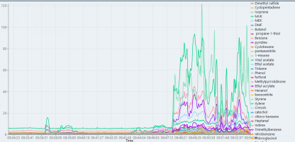 走航监测车经过位于遥观镇今创路的某企业时,监测到VOCs数据波动,随即走航车进入公司内部对该公司生产车间等敏感点位进行走航排查监测,最终在企业东北角某车间外发现了“VOCs污染源头”,主要污染物为苯乙烯、二甲苯、乙酸等。现场调查发现,出现较高浓度VOCs峰值的是该公司表面涂装车间,由于车间密闭不到位导致挥发性有机物废气出现散逸现象,执法人员现场要求该公司加强管理,减少对外环境的影响。