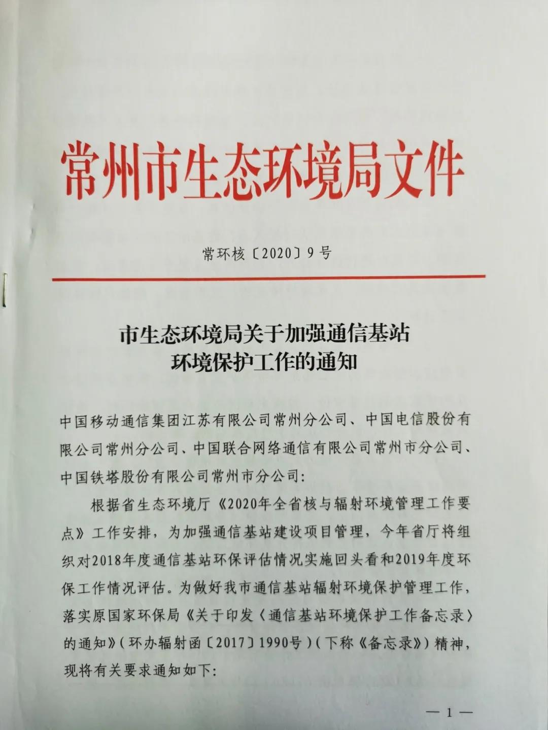 印发《关于加强通信基站环境保护工作的通知》,就基站环保工作提出4条明确意见,督促、指导各运营商和铁塔公司落实措施,提升基站环保管理水平,严防基站辐射超标造成污染,保障辐射环境安全和群众健康不受辐射污染损害,并及时公开检测数据等信息,保障群众的知情权。连续2年组织开展对上一年(建成)基站环保工作情况开展评估,检查落实情况并开展监督性监测,全力做到环保上让群众放心。