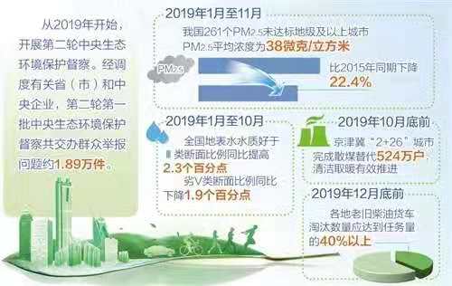 刚刚过去的2019年,各地区各部门各领域聚焦打赢蓝天保卫战、长江保护修复攻坚战、水源地保护攻坚战等标志性战役,全力以赴打好污染防治攻坚战,取得重大进展。生态环境部副部长庄国泰日前表示,“十三五”规划纲要确定的生态环境保护主要指标均达到年度目标和序时进度要求。