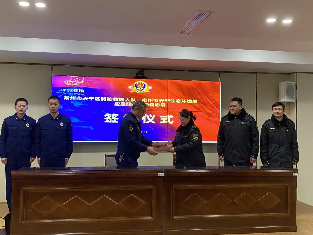 为提高天宁区环境应急和消防救援水平,建立长期、稳定、可靠的突发环境事件应急联动机制,最大限度地降低突发环境事件造成的危害影响,2月17日,常州市天宁生态环境局常州市天宁区消防救援大队在竹林路消防中队联合举行了“应急联动联勤备忘录签约仪式”。