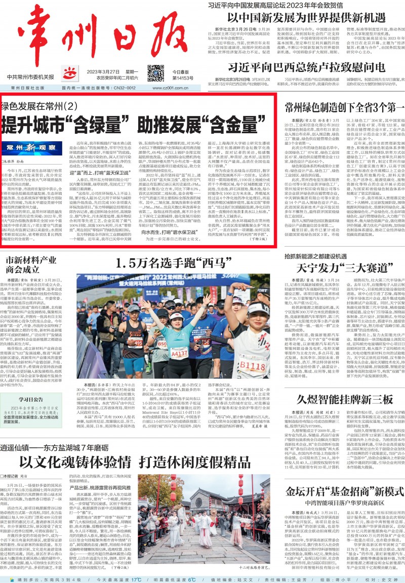 为深入学习贯彻党的二十大精神和全国两会精神,全面贯彻落实全市生态文明建设推进会决策部署,更高标准打好污染防治攻坚战,更大力度推动发展方式绿色转型。我们聚焦生态文明建设,共同观察常州绿色发展之路。