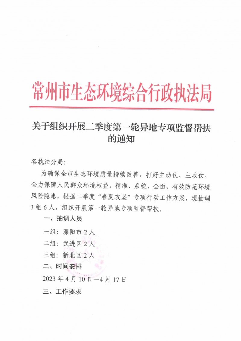 为确保二季度全市生态环境质量有效改善,打好主动仗、主攻仗,全力保障人民群众环境权益,精准、系统、全面、有效防范环境风险隐患,常州市生态环境执法系统积极谋划、精心组织,选派执法骨干力量,精准开展专项监督帮扶工作。
