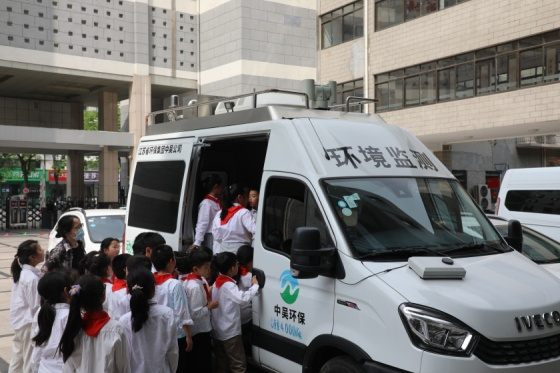 “叔叔,这是什么?是做什么用的?”在生态环境零距离体验课上,孩子们化身十万个为什么,对水、气监测仪充满了好奇。在体验课上,工作人员现场为学生演示生态环境监测实验,学生也能亲自动手学会ph试纸的使用方法,了解ph值代表着水质的酸碱程度。不仅如此,生态环境局还将大型环境移动监测设备“开”进了校园,大气环境移动监测车、无人机都让孩子们打开了新世界的大门,让他们更加了解保护环境的重要性,也在他们心中埋下一颗生态文明的种子。