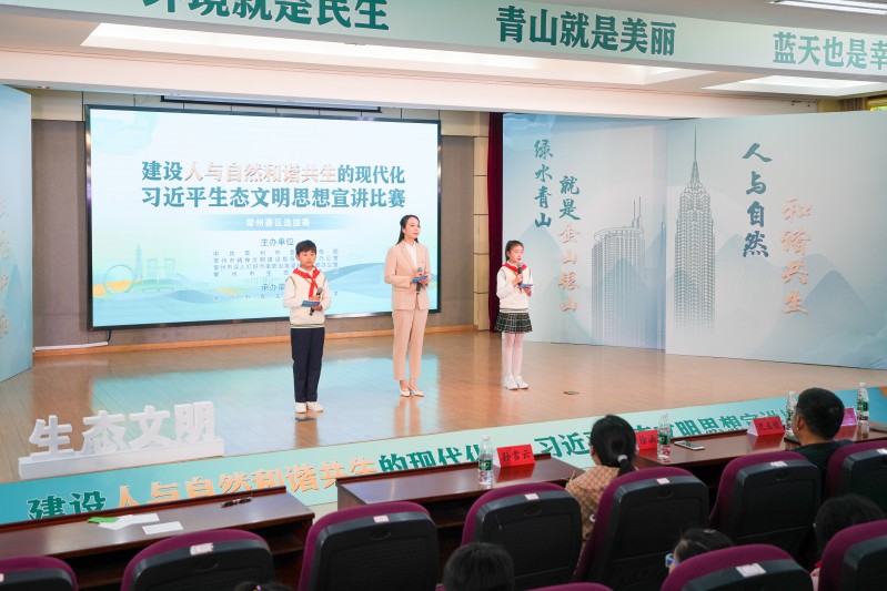 绿水逶迤、青山相向、草木繁盛、花鸟为邻。这般田园诗意,凝聚着人们对绿色美好生活的共同向往和追求。为深入学习宣传贯彻党的二十大精神,广泛传播习近平生态文明思想。4月25日下午,由市委宣传部、文明办,市攻坚办、市生态环境局联合举办的关于“建设人与自然和谐共生的现代化——习近平生态文明思想宣讲比赛”常州赛区选拔赛决赛在青龙实验小学开赛!市文明办副主任沈玉俊、常州市生态环境局三级调研员徐涵春等领导出席活动。