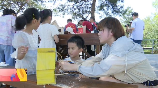 今年六·五环境日主题是“建设人与自然和谐共生的现代化”。为让孩子们参与生物多样性的保护工作,活动还专门设置了手工鸟巢制作环节。孩子们与家长共同动手,制作了专属鸟巢挂在树梢上。