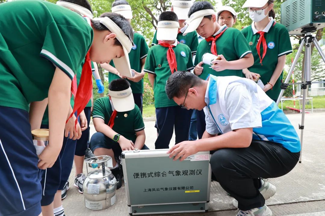 在环境空气采样区,江苏省常州环境监测中心工作人员依次介绍了测量风向、空气湿度、空气成分等有关仪器,并带小使者们一起尝试收集空气,对空气样本的监测数据进行通俗易懂的解读。