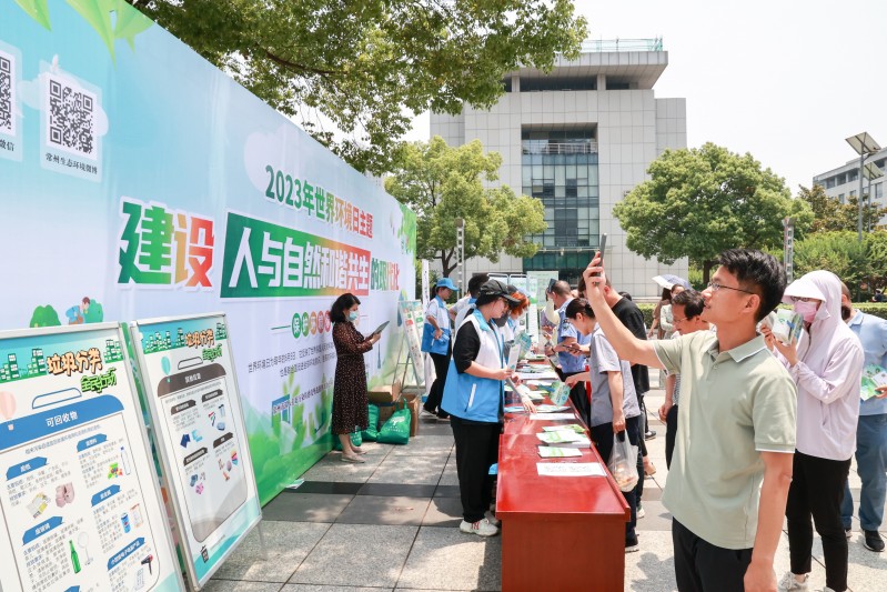 活动现场,各单位志愿者通过摆放宣传展板,纷发低碳生活、无废城市宣传手册,发放环保宣传品等方式,向广大机关工作人员宣传讲解环境保护的重要意义,进一步唤醒全社会生态环境保护意识,积极投身美丽常州建设。