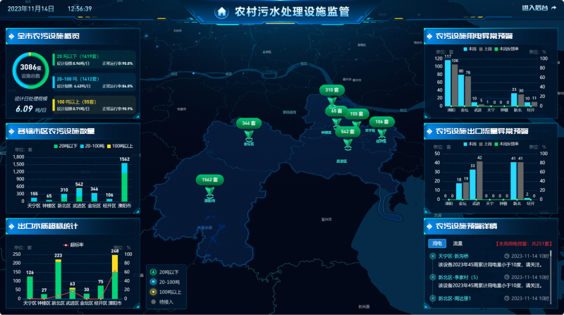▲常州市“农村污水处理设施监管”驾驶舱
