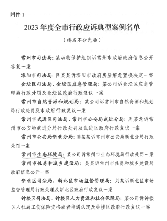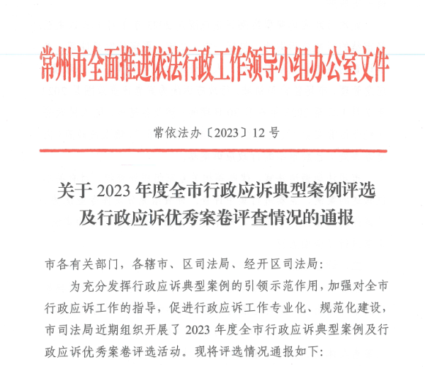 近日,常州市2023年度行政应诉典型案例及行政应诉优秀案卷评选结果、江苏省2023年度行政应诉案卷评查结果陆续出炉,常州市生态环境局办理的“武进区某家具厂诉常州市生态环境局行政处罚一案”获评2023年度全省行政应诉案卷三等奖及全市行政应诉优秀案卷,“新北区某公司诉常州市生态环境局行政处罚一案”获评2023年度全市行政应诉典型案例。