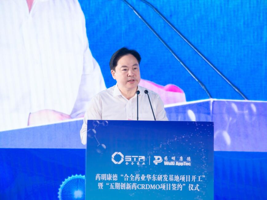 8月10日上午,药明康德“合全药业华东研发基地项目”开工暨“五期创新药CRDMO项目”签约仪式在常州国家高新区举行。省长许昆林作视频致辞,市委书记陈金虎、市长盛蕾出席仪式。
