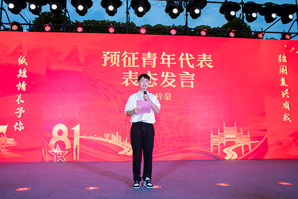 活动由钟楼区唯一一所少年军校——东方小学的学生带来的歌舞《中华少年》拉开帷幕,孩子们纯真的脸庞歌颂着浓浓的爱国之情。常州市荆川小学学生带来的诗朗诵《荆川精神颂》铿锵有力,将抗倭英雄唐荆川的故事及家国情怀深情演绎,正所谓少年智则国智,少年强则国强,他们展现出了心底的家国情怀也唱出了自己的梦想!随后,预征青年徐梓豪上台发言,他说:“我希望能够光荣参军,挥洒热血报效祖国,为永红争光,为我们的国家和人民争光!”激情洋溢的发言无一不体现出他内心想成为一名真正军人的坚定!