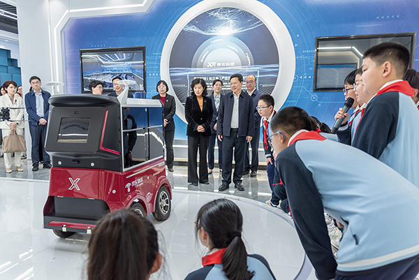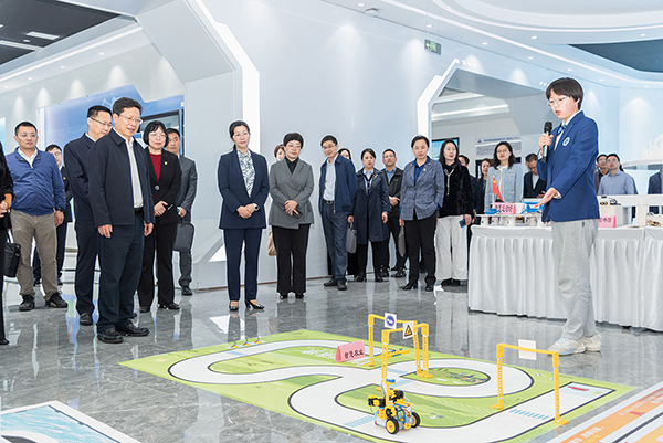 与会嘉宾现场实境式体验“看得见”“听得进”“有意思”的沉浸式思政课——“未来属于我”科技之路教学,观看“江南第一燕·行走的思政课”八条线路展示。据了解,去年3月钟楼区在“千载读书地”民元里壹号启动了“重走秋白上学路”实境思政课,创新推动思政课走出教室,与实践结合、与生活融通。经过一年多的实践与探索,“立志之路”“奋斗之路”“报国之路”等8条实境式体验线路精彩亮相,47个教学实践基地成功建成,“1357”实施框架基本形成,构建起馆校一体、企校一体、家校一体的协同育人新格局,入选“全国学校家庭社会协同育人实验区”,相关经验做法登上《人民教育》杂志,得到市政府主要领导批示肯定。