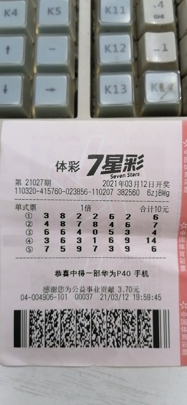 截至3月15日,常州已中出华为P40手机10台。大家可以选取家人号码、生日号码、电话号码、车牌号码等组成数字,用来投注7星彩,在奉献一份爱心的同时,也为自己坚守一份幸运。