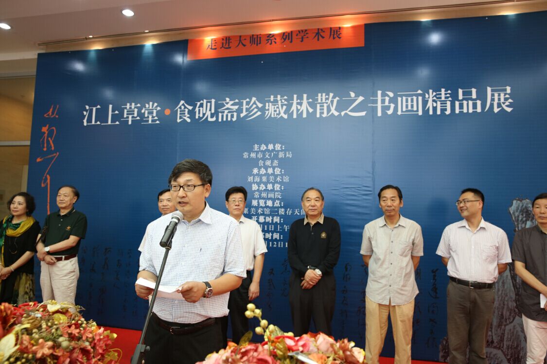此次展览要特别感谢食砚斋主人、江苏省美术家协会名誉主席宋玉麟先生。此次展览的所有作品都为宋老的私人收藏。宋老艺术眼界奇高,他的收藏以“高大上”享誉书画界和收藏界,宋老所珍藏的林散之书画作品,可以说件件都是精品,件件都是力作。也正因为宋老的慷慨借展,常州市民才能有机会在家门口欣赏到这么高品位的书画精品。