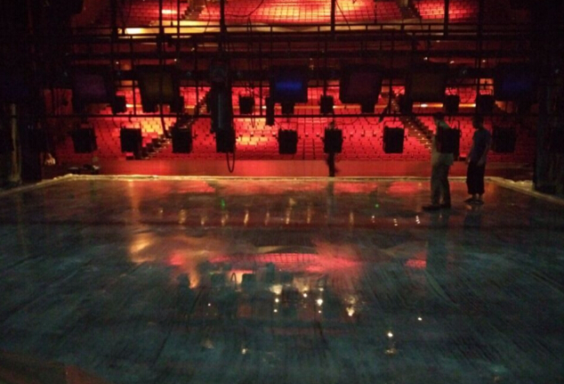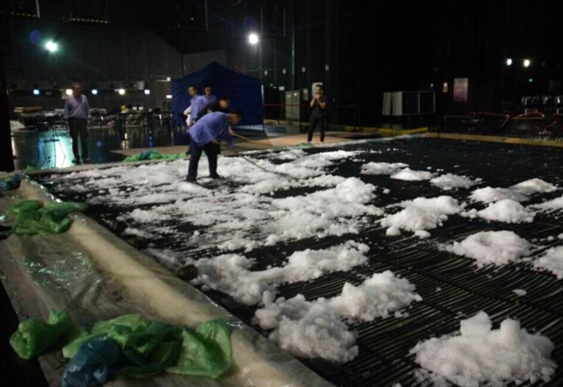 更值得一提的是,演出是在剧场内的真冰舞台上演绎!大家不禁会好奇,普通的舞台如何实现如此神奇的效果?许多观众在购票时也提出了相同的问题。由于院团达到时间是凌晨,但为了满足大家的好奇,常州大剧院首次面向会员进行了制冰过程的现场图片直播!