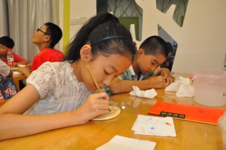 活动伊始,邢粮老师通过题为《走近宫梳名篦》的精彩讲座为学员们介绍了常州梳篦的发展史、用途、制作工具、工艺流程等。通俗易懂的文字和精美的图片使大家快速而全面地了解了常州梳篦的悠久历史和文化内涵。接下来是大家期待已久的手绘“飞天”梳篦环节。如何调和肉色与白色,使得飞天的肌体部分显得天然纯粹;怎样将色彩从冷色调过渡到暖色调,而又避免它们之间的相互破坏;朱红、湖蓝、翠绿、橘黄等颜色的描绘顺序又该如何……邢粮老师手把手地把绘制技巧一一教授给大家。学员们也学习地格外认真,一笔一划画得分外仔细,生怕一不小心就破坏了图案的美感。不知不觉,一幅幅带有浓烈敦煌色彩的飞天图案就出现在了大家笔下。看着自己亲手画成的作品,学员们的兴奋之情溢于言表,纷纷表示“这次体验太‘赞’了!”,“希望还能有这样的机会。”……