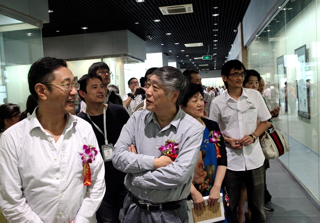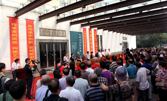 九月的大地,金风送爽,丹桂飘香。由常州市委宣传部、常州市文广新局、常州市文联主办的,深受全市人民欢迎和期待的“第二届‘文化100’大型惠民行动”正在全市范围紧锣密鼓地进行中。作为本届文化惠民活动的主阵地之一,由常州画院承办的“近现代艺术大师系列作品展”之“大千世界·云生胜景——张大千、孙云生作品展”和“清风明月——纪念赵朴初诞辰108周年法书展”均已获得了圆满成功,并受到了我市各级领导和广大市民的热烈欢迎与高度评价。今天,在中秋、国庆佳节相继来临之际,“当代女书圣——萧娴书法展”在常州画院美术馆隆重开幕了。出席开幕式的领导和嘉宾有:常州市政协副主席居丽琴,中国书法家协会学术委员、南京艺术学院博士生导师黄惇教授,萧娴大师的儿子江炳灵,萧娴大师的女儿江凤子,萧娴大师的弟子、原南京市书法家协会副主席庄熙祖,萧娴大师的弟子、原南京市书法家协会副主席桑作楷,常州市文联主席、党组书记荣凯元,常州市文广新局党委副书记、纪委书记黄娅芬,常州市文广新局副局长谢春林,南京求雨山文化纪念馆馆长李永胜,常州市书法家协会主席叶鹏飞。谢春林、江炳灵分别代表主办单位和家属致词,常州画院副院长吴鸣主持开幕式。专程从南京赶来的萧娴大师的家属、弟子、书法爱好者和我市市民400余人参加了开幕式。