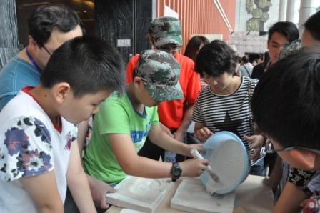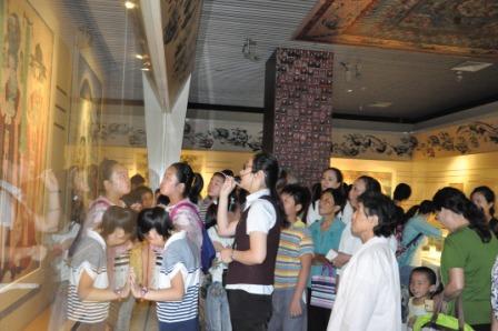 9月19日上午,在南通博物苑的组织下,来自南通师范学校第二附属小学五(4)班的近百位学生及其家长来到常州博物馆参观《丝路瑰宝——敦煌艺术大展》。在讲解员生动详细的介绍下,大家了解了常州与敦煌的渊源,欣赏了精美绝伦的壁画临摹品,也知晓了洞窟的开凿及壁画的绘制过程。参观结束后,同学们分组参加了“佛像面面观——佛像翻模”活动,每人都亲手制作了一尊佛像模型。