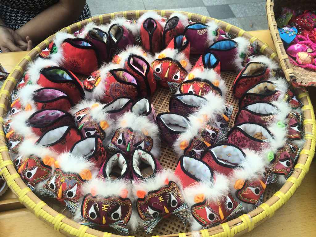 舞台上在表演《调三十六行》、《常州吆喝》、越剧《读西厢》、锡剧《春江月选段》等节目时,底下的非物质文化遗产展示摊位前,也迎来了一波又一波驻足的人们。剪纸、梳篦、糖画、面塑、虎头鞋、梨膏糖等15个非物质文化遗产项目的展示展演展销依次排开,而坐在摊位上的,有些是该项目的非物质文化遗产继承人,有些则是出于自身喜好的民间艺人。