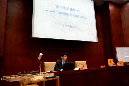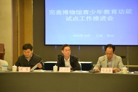 江苏省为“完善博物馆青少年教育功能”全国10个试点省份之一,在推进会上,常州市文广新局局长陈建共欢迎词,省文物局局长刘谨胜、省文明办副主任葛莱等领导发表讲话,对推进试点工作表示支持,对博物馆完善青少年教育功能寄予希望。会议上,南京博物院、苏州博物馆作为试点单位代表就博物馆青少年教育介绍经验,泰州市文明办、如皋市教育局、常州市博物馆志愿者张石磊等代表不同行业作交流发言。会议还研究部署了博物馆青少年教育项目库征集工作。