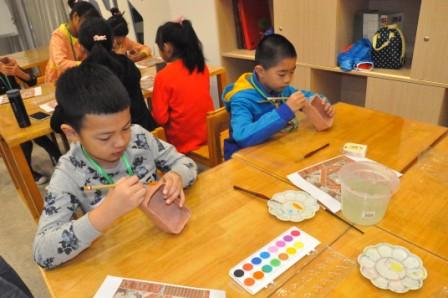 此次彩绘的图案“天人池中嬉戏图”和“八瓣莲花图”由常州博物馆馆长荣长付精心创作,取材自敦煌莫高窟第257窟宝池莲花平棋和隋代的八瓣莲花砖。在荣馆长的悉心指导下,学员们小心翼翼地为花器泥坯打底、勾线、题字、填色……大家全程全神贯注、一丝不苟。经过一番努力,一件件色彩缤纷、形状各异的花器就绘制完成了。学员们捧着自己亲手完成的作品,兴奋之情溢于言表。