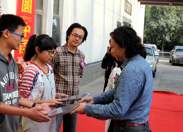 常州画院副院长吴鸣代表画院向小书家们赠送大师作品集(萧娴书法作品)