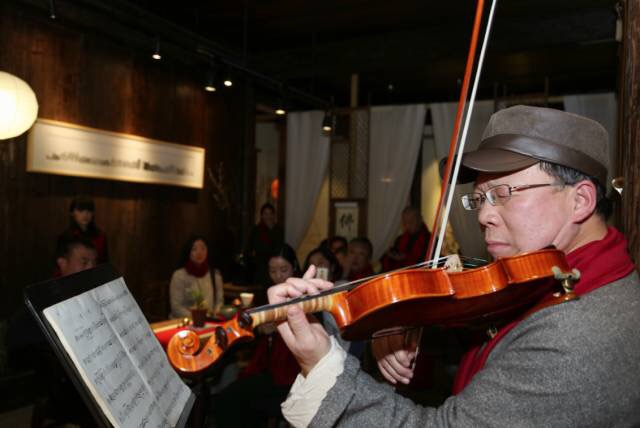 古琴金陵派传承人杨老师说,“花守”是一个有才情的地方。一曲由古琴和竖箫合奏的《寒山僧踪》,从蒸腾的茶气中流泻出来,如静静的夜,月光照进了心,听见了寒山钟鸣,声声苦乐皆随风。转而琵琶演奏的彝族舞曲,则是欢快灵动。