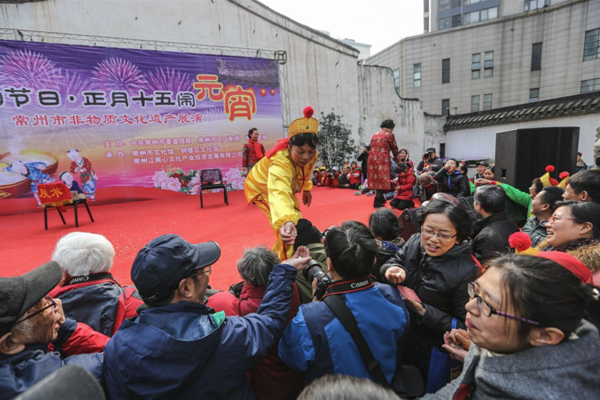 除了节目表演,现场还有梳篦、面塑、糖画、剪纸、烙画、虎头鞋、小杏鱼圆、阿兴鸭头、脚踏糕、萝卜干、芝麻糖、铳管糖、焦店扣肉、横山桥百叶、卜弋桥猪头肉、湟里牛肉、梨膏糖、素火腿、手工大麻糕、元宵、江南八宝菜粥等常州非物质文化遗产项目展示展销,也是获得了市民朋友的一致好评。活动当天,无论是表演者还是观众,大家都在“我们的节日”里演得精彩、玩得尽兴、闹得疯狂,提前度过了一个特别的元宵佳节。