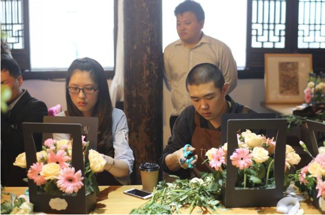 5月14日下午2点,“花海·书香生活美学花艺沙龙”在壹号书斋内顺利举行。