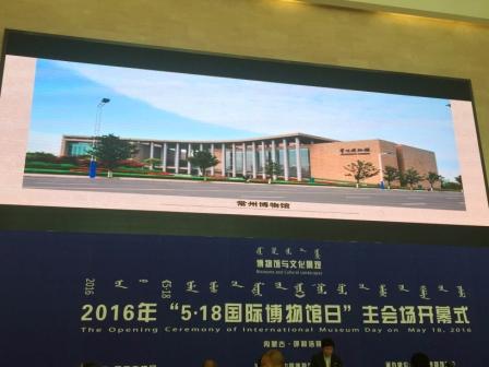 5月18日上午,在内蒙古呼和浩特“5•18国际博物馆日”全国主会场开幕式上,常州博物馆被授予“2016年全国最具创新力博物馆”荣誉称号。此次获此殊荣的全国仅两家,另一家是广东省博物馆。林健馆长代表常州博物馆上台领奖。