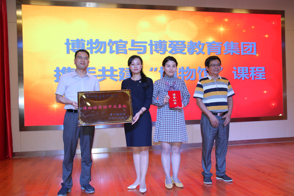9月20日,在常州博爱教育集团的“全国科普日”活动启动仪式上,常州博物馆正式宣布博爱教育集团成为首个博物馆课程开发基地,常州市教育局德育处处长肖志民与常州博物馆副馆长邵建伟共同为学校授牌,并为参与课程开发项目的教师代表颁发证书。