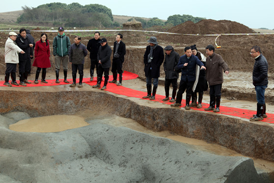 与会专家对象墩遗址群位于新龙生态林二期项目范围内的考古发掘现场进行实地踏勘、考察了象墩遗址本体及现存环壕、观摩了发掘出土的文物标本,会议先后听取了常州龙城生态建设有限公司、常州市考古研究所、常州市园林设计有限公司关于建设概况、考古情况以及遗址保护规划的工作汇报。随后专家就寺墩遗址群考古调查、象墩遗址群考古发掘成果以及今后的文物保护和展示等方面进行广泛讨论,达成共识,形成会议纪要。